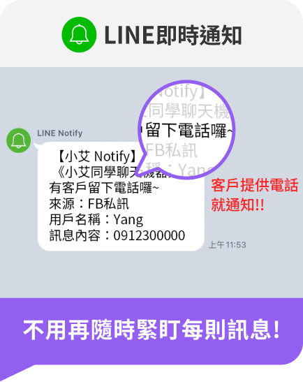 小艾同學會是你的客服機器人首選,提供不同的回覆模式與應用,搜集各式訊息中的關鍵字與名單資料,以利更精準的行銷!