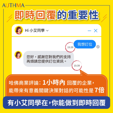 哈佛商業評論曾經報導過:「即時回應消費者線上問題的重要性... 當中提到在1小時內回覆的公司,影響客人做關鍵決策的可能性是七倍」