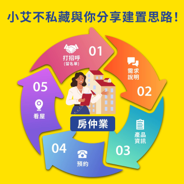 打招呼 > 需求說明 > 產品資訊 > 預約 > 看屋